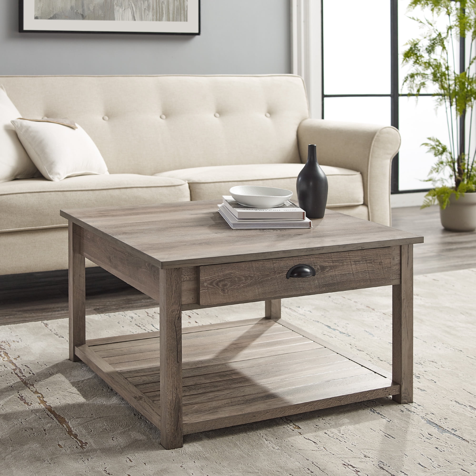 Walker Edison Grey Wash Wood Veneer Rustic Coffee Table with Storage Very well made.