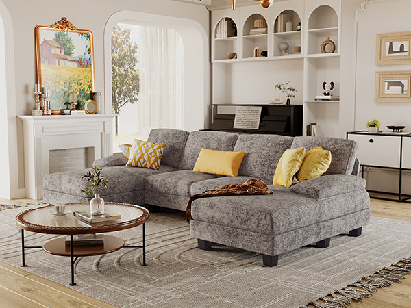 Amazon Furmax Sectional Couches for Living Room U Shaped Sofa Couch with Linen Fabric 4 Seat Sofa Set with Double Chaise for Apartment Fabric Very well made.
