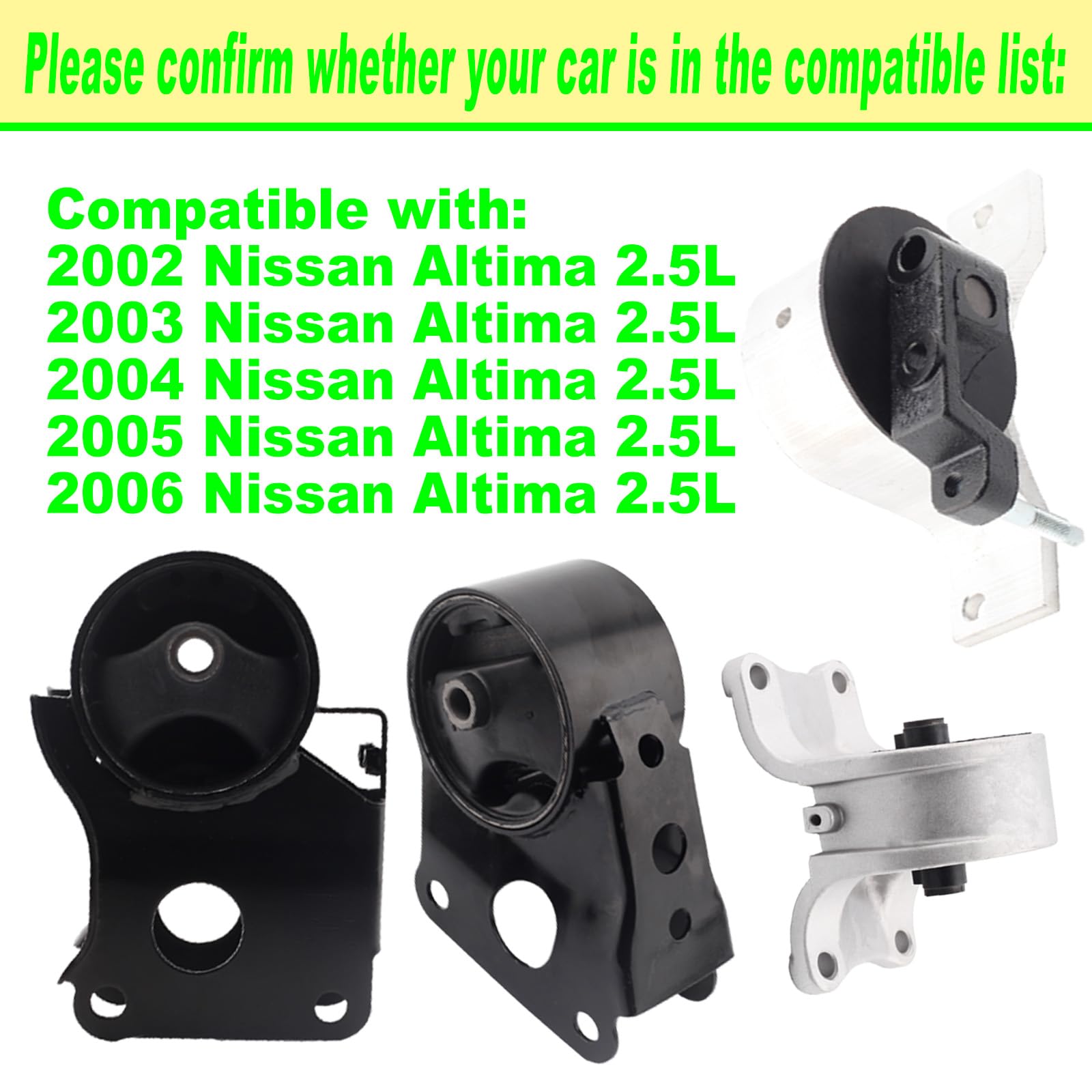 A Premium Set of 4 Engine Motor Mount and Transmission Mount Kit Compatible with Nissan Altima 2002 2003 2004 2005 2006 L4 2.5L Sedan Automatic Transmission Amazon DIY Tools Very well made.