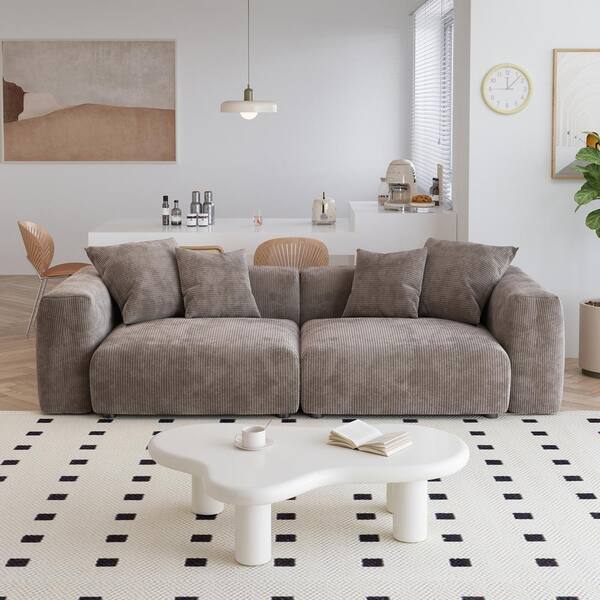 J E Home 102 in. Square Arm Corduroy Velvet L Shaped Sofa in. Brown JE SF126BR 21 Very well made.