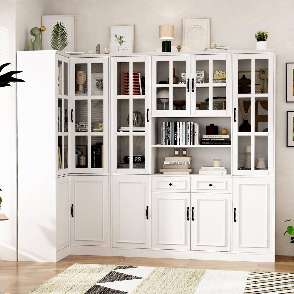 78.9 in. H White Wooden Corner Accent Storage Cabinet Combination Cabinet with Hutch Adjustable Shelves Glass Doors Very well made.