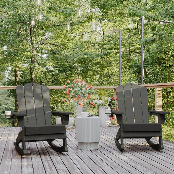 BizChair HDPE Adirondack Rocking Chair with Cup Holder Gray Set of 2 Very well made.