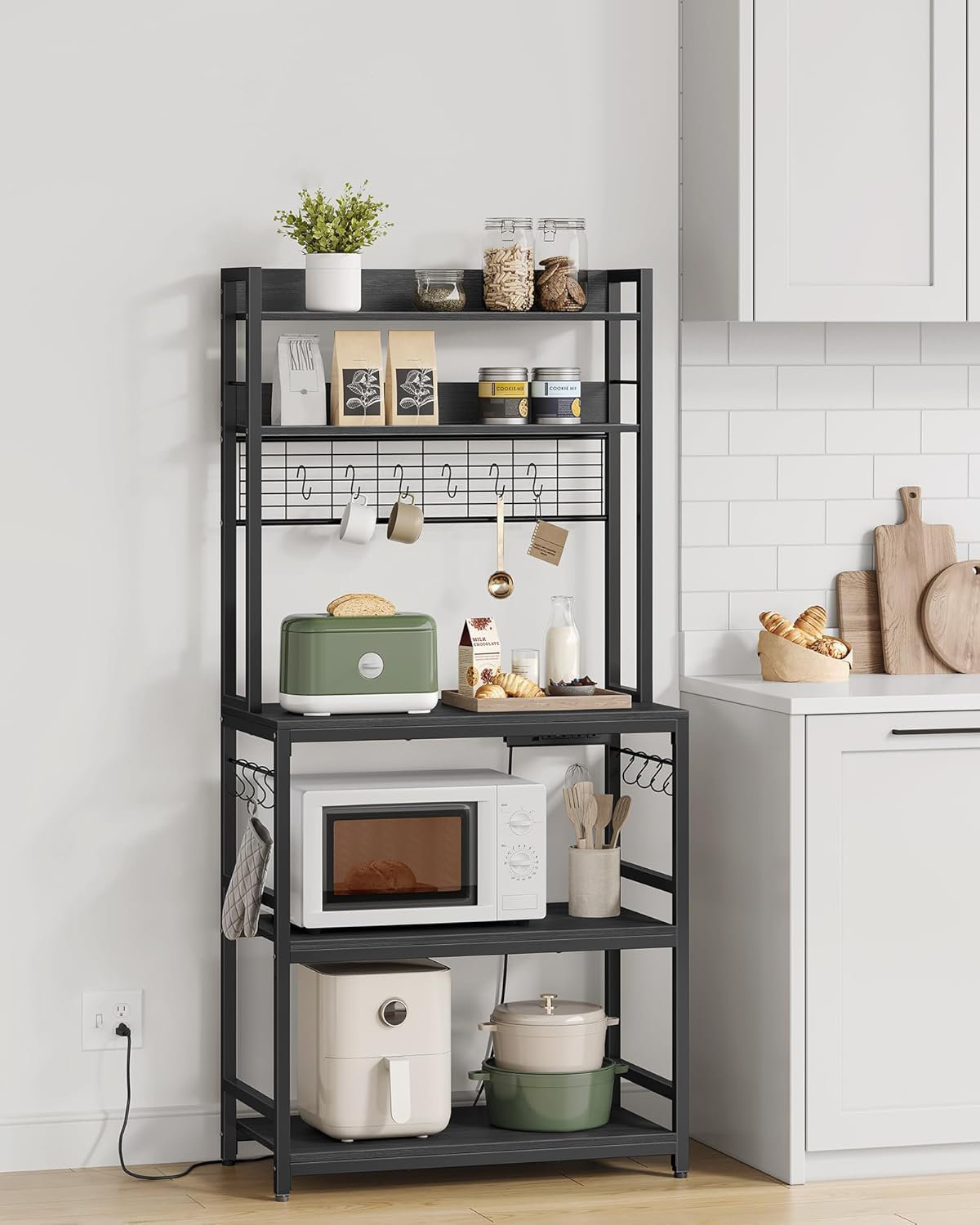 AMIBZ Bakers Rack With Power Outlet 14 Hooks Microwave Stand Adjustable Coffee Bar With Metal Wire Panel Wayfair Very well made.