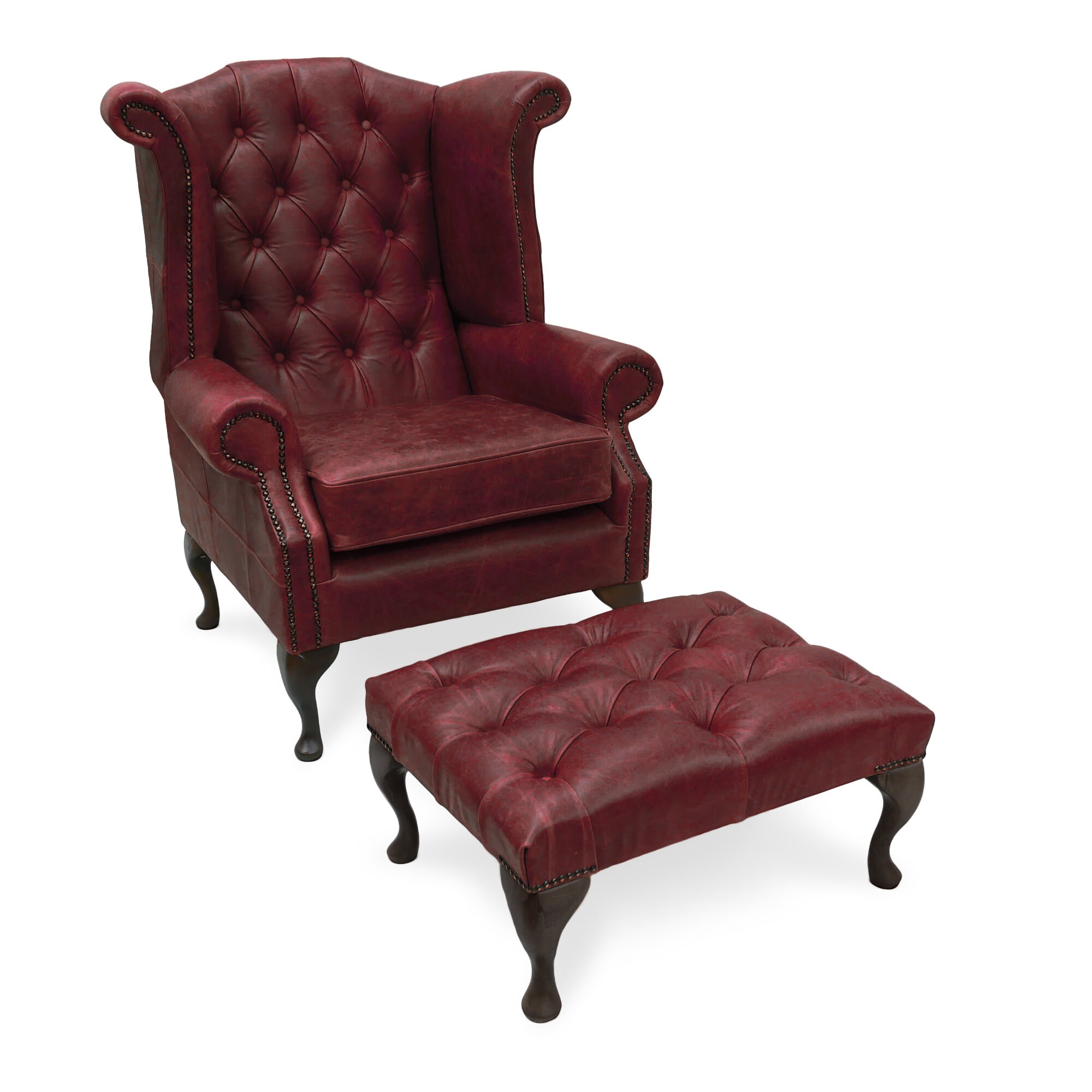 Chesterfield Queen Anne High Back Wing Chair Footstool in Vintage Red Grape Leather Etsy Very well made.