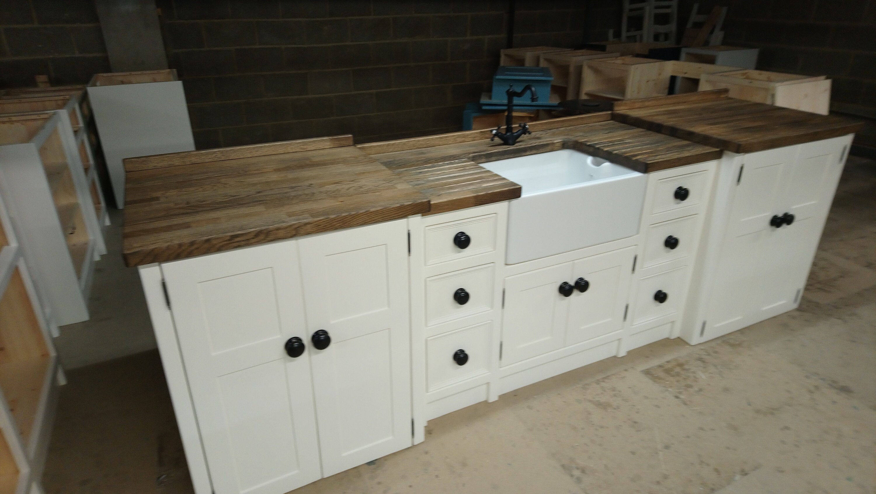 Handbuilt Solid Pine Freestanding Sink double Appliance Unit With an 600mm Belfast Sink painted in Wimbourne White. Etsy Very well made.