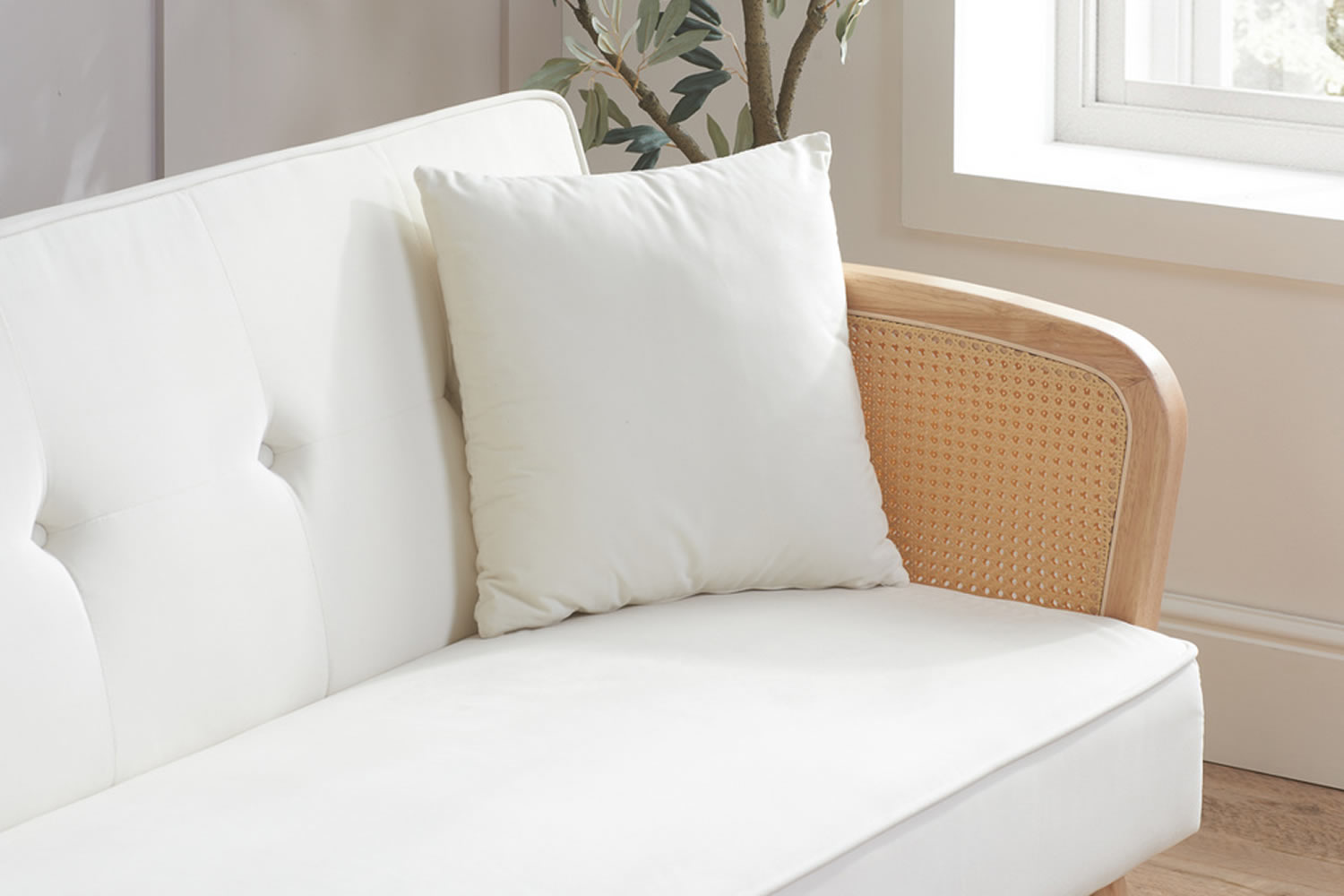 Mila White Plush Velvet Fabric Sofa Bed With Rattan Armrests Very well made.