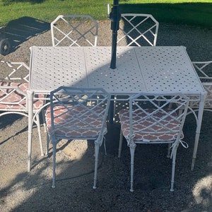 9 Pc Brown Jordan Calcutta Patio Set Dining Table Arm Chairs End Tables Bamboo Very well made.