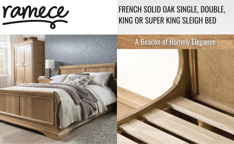 Ramece French Solid Oak Sleigh Bed Home Bedroom Furniture 4 6 Double Wooden Bed Frame H104.5 x W149.2 x L208 cm Double Amazon Home Kitchen Very well made.