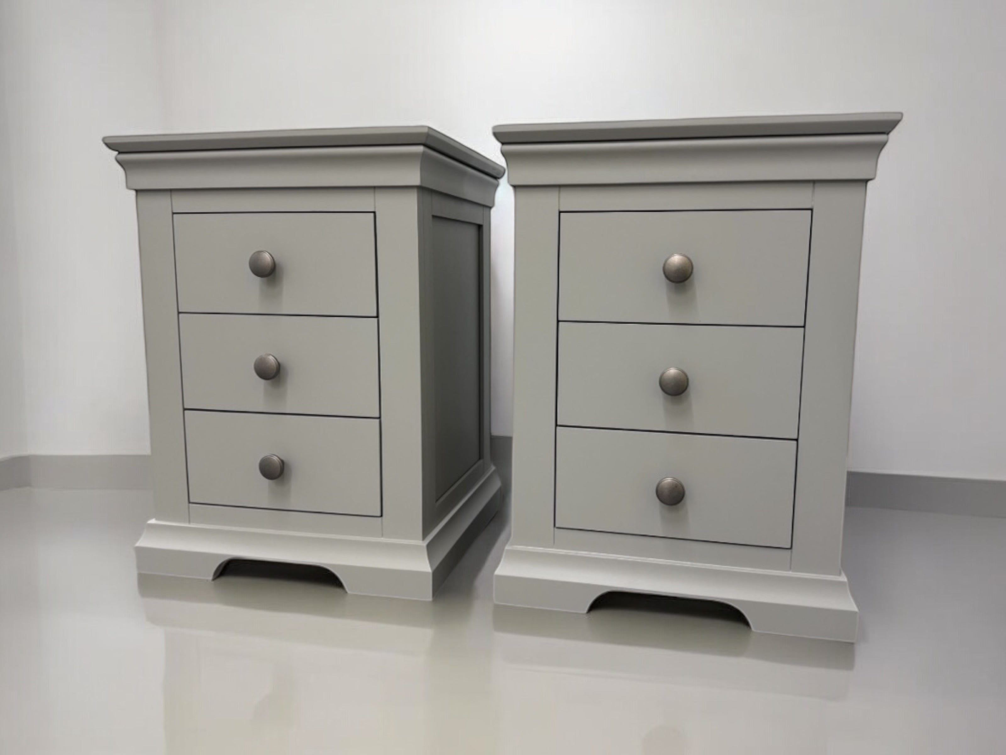Cotswold Company Solid Wood Frame Pebble Grey Bedside Tables RRP 169 SE Furniture Outlet Very well made.