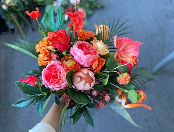 Tropical Wedding Bouquets With Bright Colors Summer Wedding Bridal Bridesmaid Bouquets Tropical Theme Wedding Flowers Protea Bouquets Etsy UK Very well made.