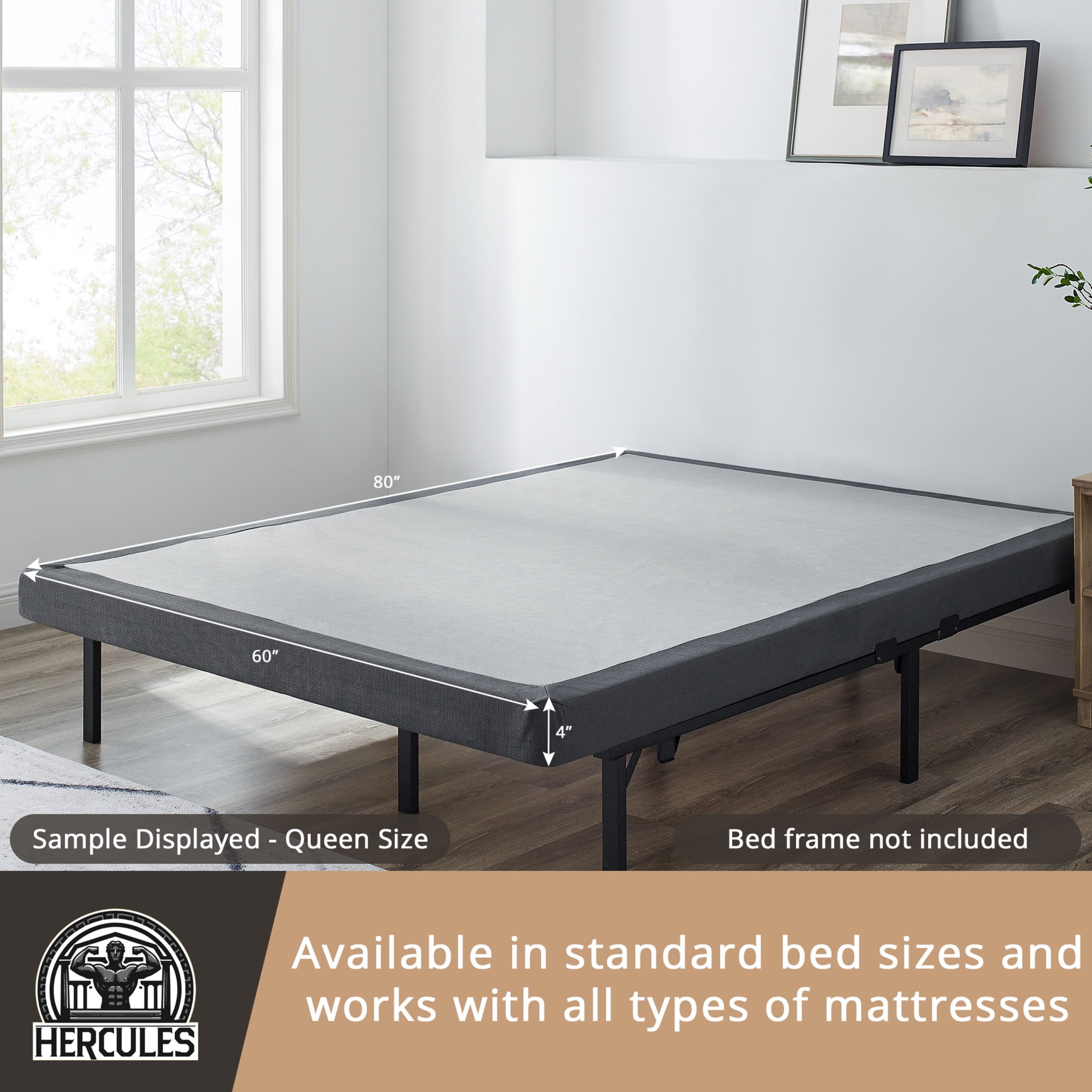 Hercules 4 inch Low Profile Foundation Platform Bed Frame Easy Assembly Mattress Foundation Wood Box Spring Replacement Grey Poly Cover Queen Walmart Very well made.