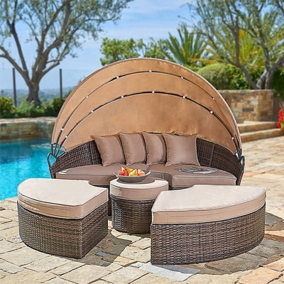 Outdoor Furniture General Use Round Sunbed Rattan Garden Canopy Daybed Canopy Bed Modern Contemporary Wooden Sofa Canopy Daybed BestSuppliers Very well made.