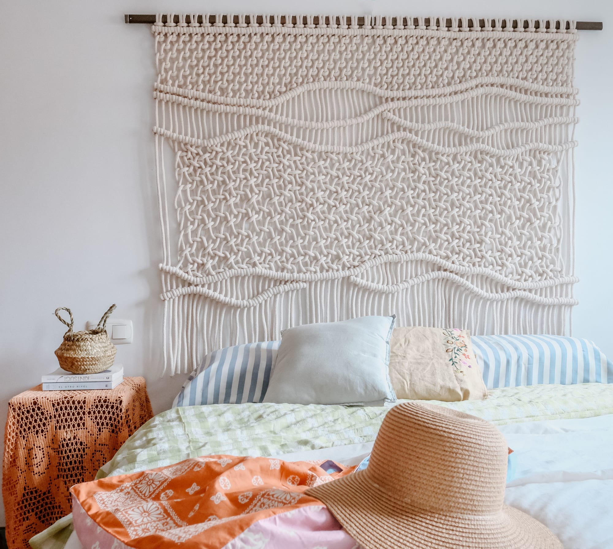 DIY Tapestry Headboard Tapestry headboard Creative headboard Very well made.