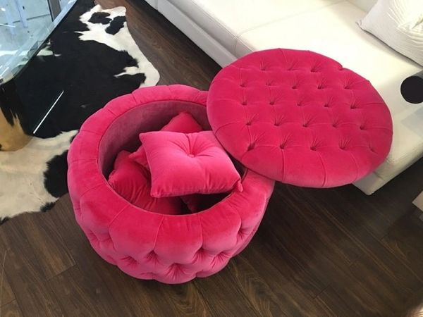 Round Ottoman With Storage Velvet Tufted Ottoman On Chrome Castors Hot Pink Very well made.