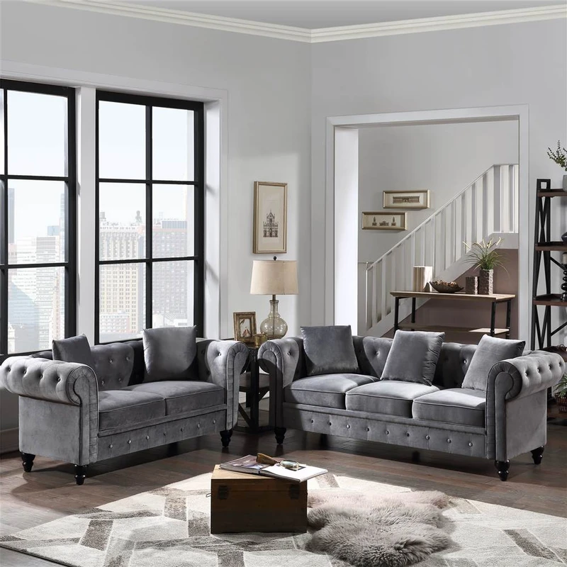 63 80 Velvet Upholstered Sofa Set with 5 Pillows Gray Very well made.