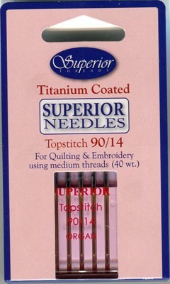 Superior Gold Titanium Topstitch Needles Size 90 14 Pack 5 Barnyarns Very well made.
