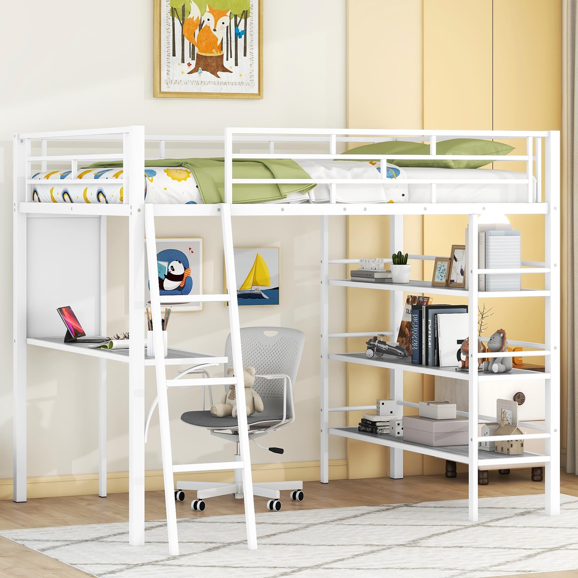 Amazon VilroCaz Full Size Loft Bed with Desk and Whiteboard Heavy Duty Metal Loft Bed Frame with 3 Shelves and Full Length Guardrail for Bedroom Very well made.