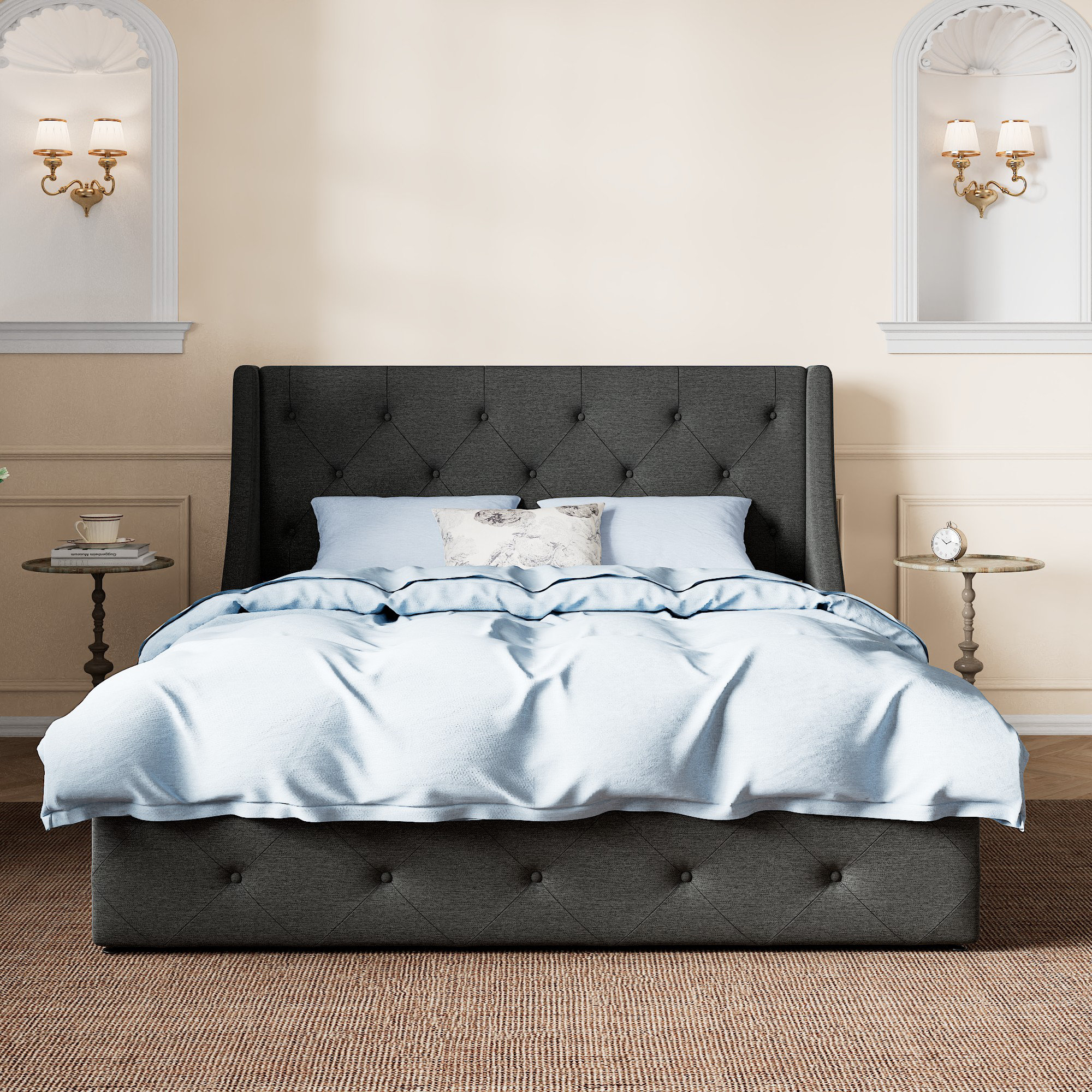 Brij Upholstered Wingback Storage Bed Red Barrel Studio Color Light Gray Mattress Size Queen Very well made.