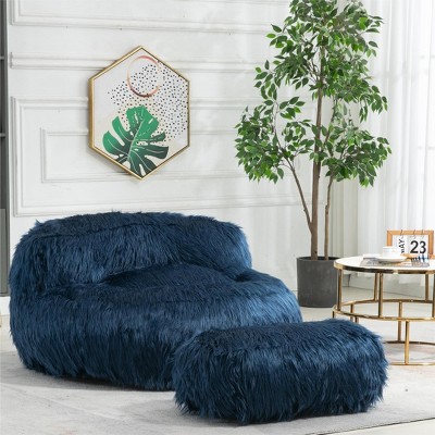 Navy Plush Bean Bag Couch With Ottoman Lazy Sofa Chair best Beanbag Chair lazy Boy Sofas For Living Room Bedroom Apartment maison Boucle Target Very well made.