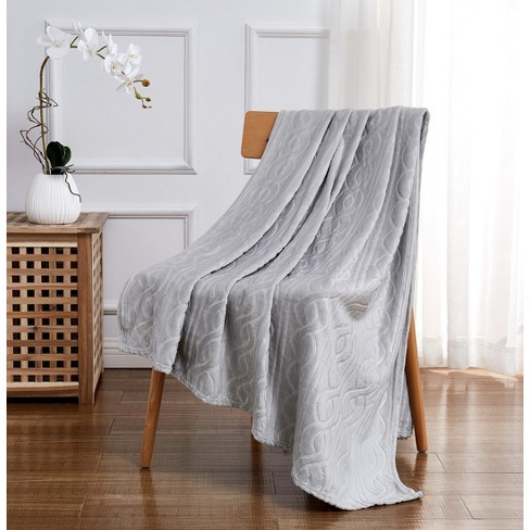 Kate Aurora Ultra Soft Plush Cable Geometric Designed Embossed Fleece Accent Throw Blanket Silver Very well made.