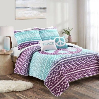 5pc Peace Ombre Kids Quilt Set Purple Blue Lush D cor Very well made.