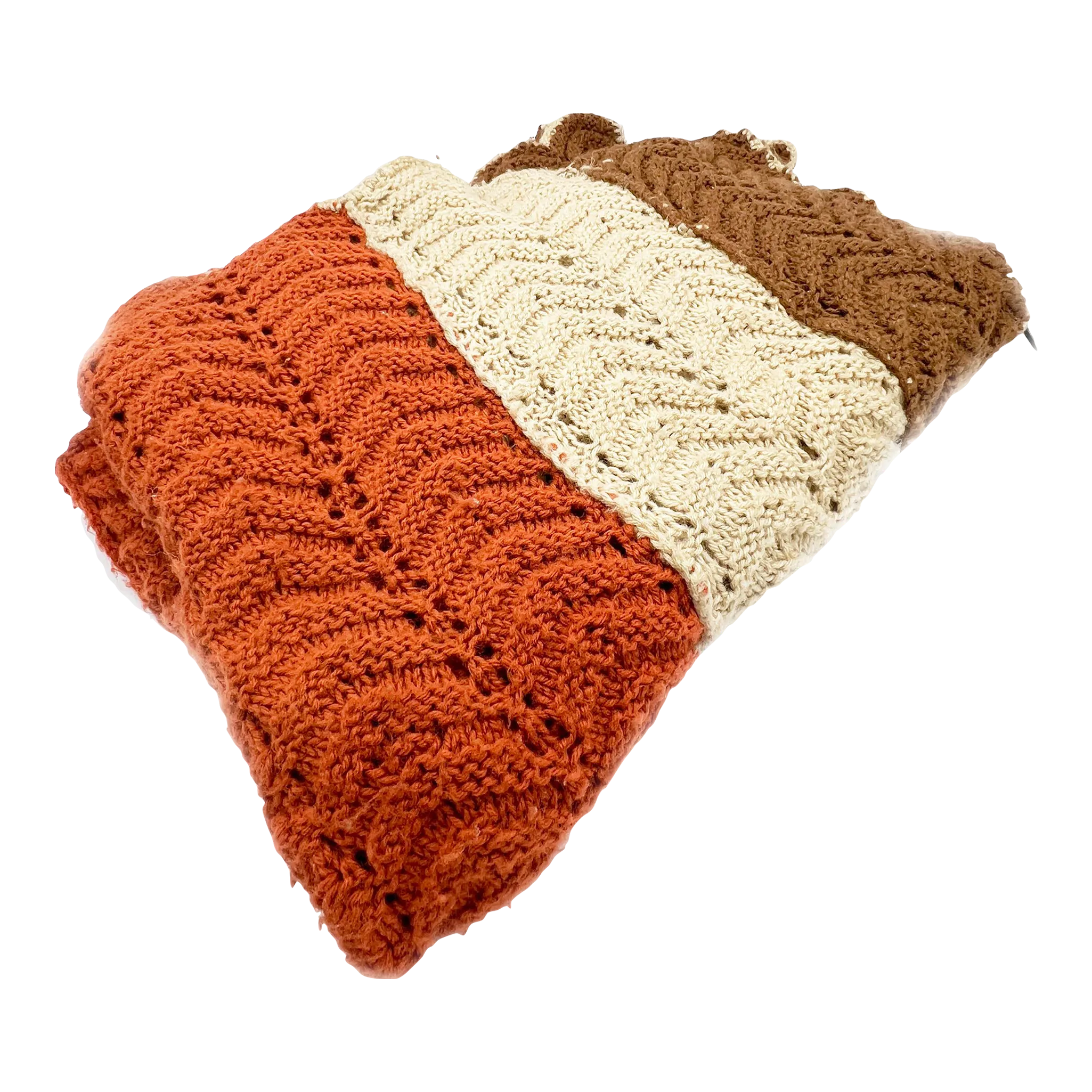 Retro 1970s Handmade Textured Striped Crochet Blanket Very well made.