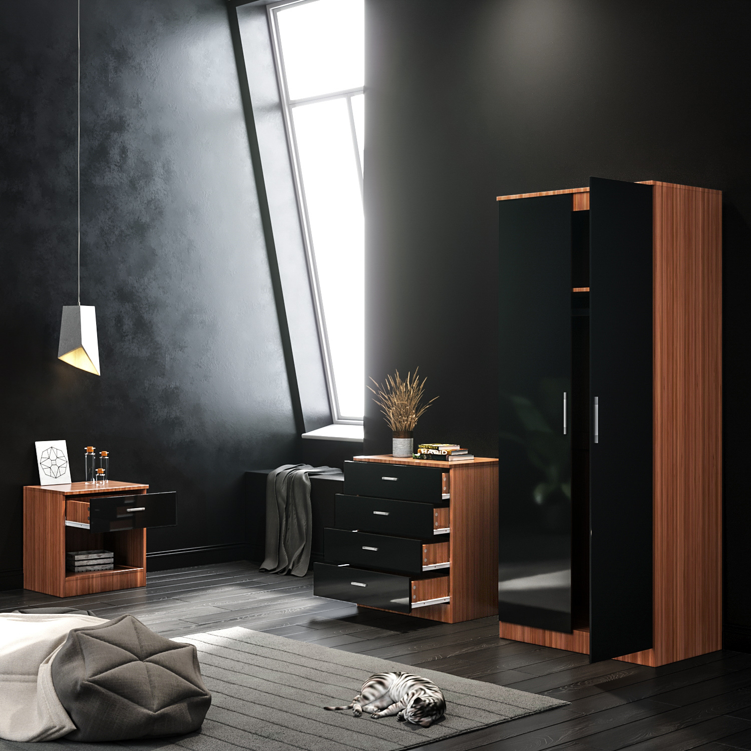 ELEGANT Black Walnut Modern High Gloss Wardrobe and Cabinet Furniture Set Bedroom 2 Doors Wardrobe and 4 Drawer Chest and Bedside Cabinet Very well made.