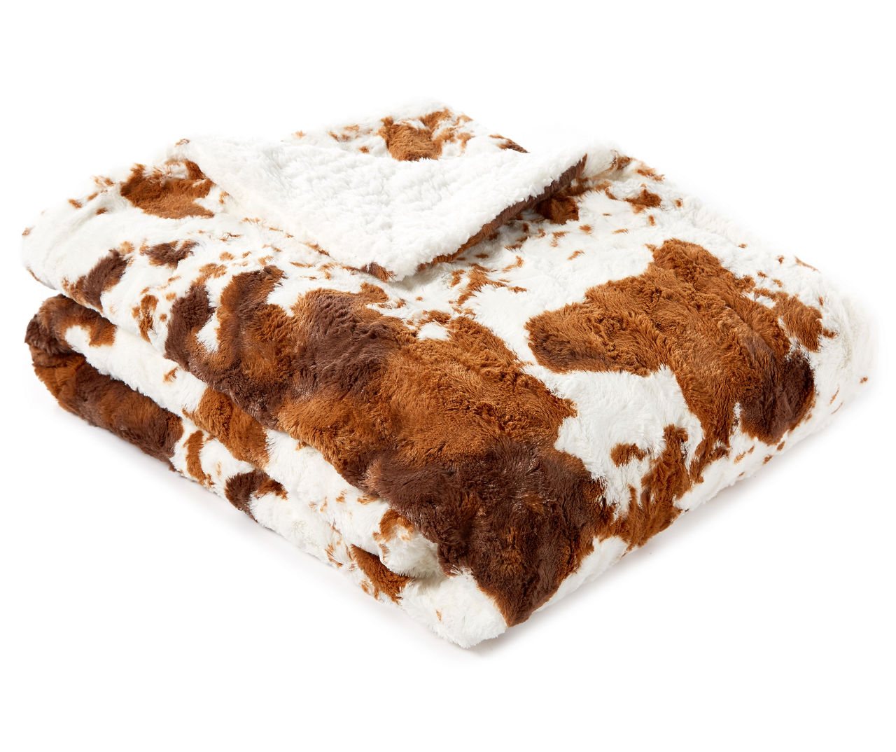 Broyhill Cream Brown Cow Print Faux Fur Full Queen Comforter Very well made.