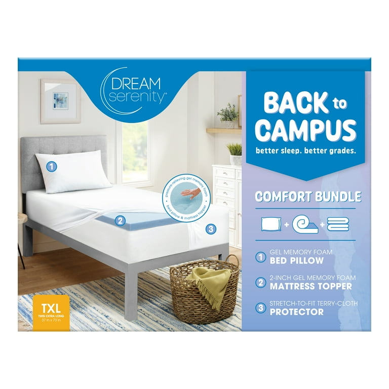Dream Serenity Dorm in A Box Memory Foam Pillow 2 inch Memory Foam Topper Mattress Protector Bundle Twin Extra Long Very well made.