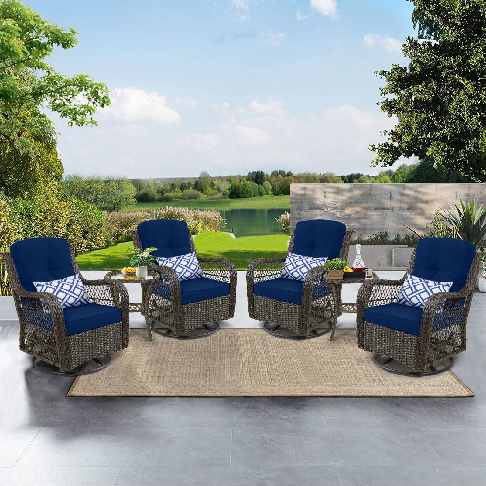 Amazon Auzfy 6 Pieces Outdoor 360 Swivel Rocker Patio Chairs Set Outdoor Swivel Rocking Glider Chairs Set with Table 4 Pillows PE Wicker Very well made.