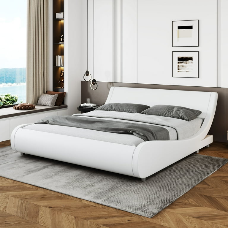 Sha CERLIN White Full Platform Bed Leather Bed Frame with Adjustable Headboard Adults Very well made.