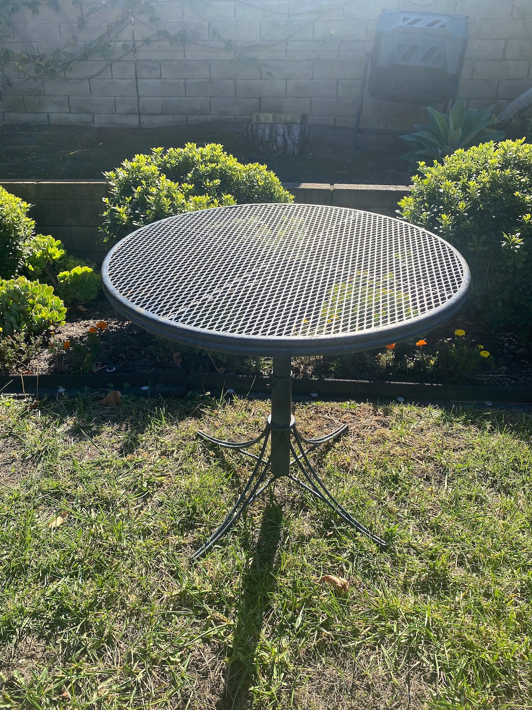 Vintage Wrought Iron Woodard Metal Mesh Round Patio Dining Table Adjustable Height Etsy Very well made.