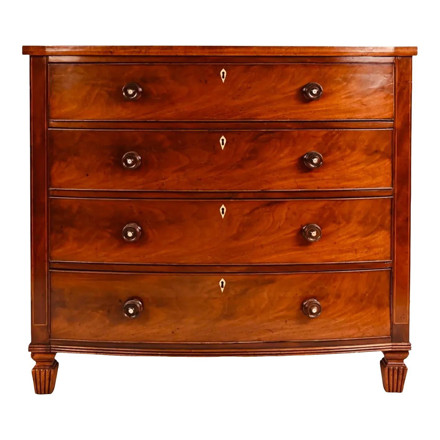 Large English Bow Front Chest of Drawers of Mahogany Antique Swan Very well made.