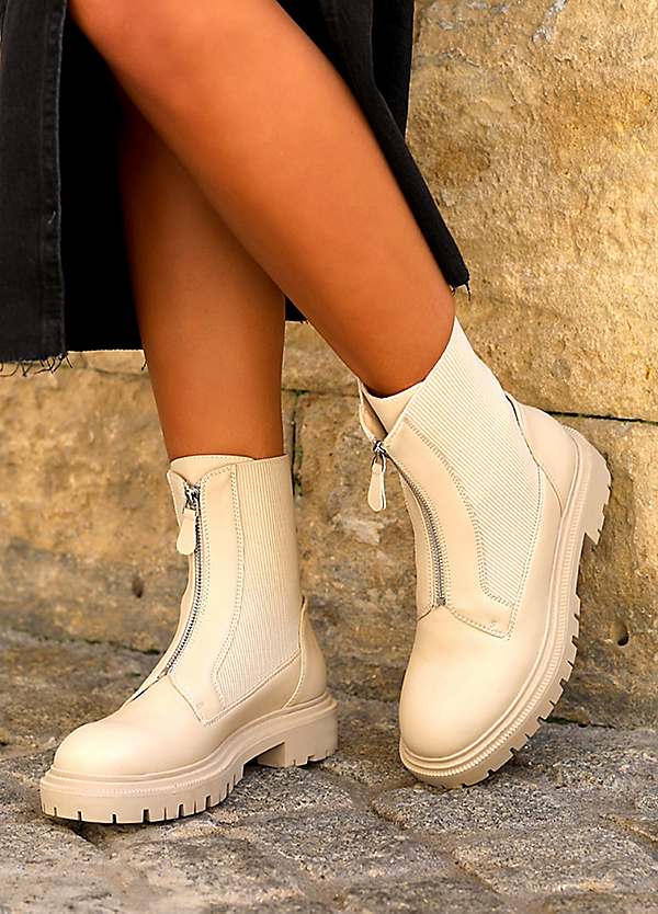 Della Beige Faux Leather Zip Up Boots by Linzi Very well made.