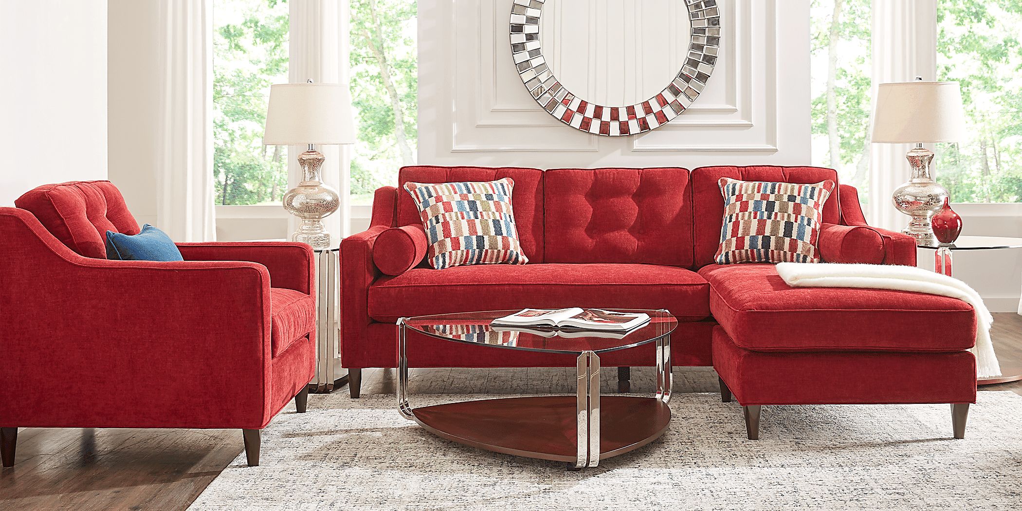 Cindy Crawford Hanover Ruby Red Chenille Fabric Premium Sleeper Chaise Sofa Very well made.
