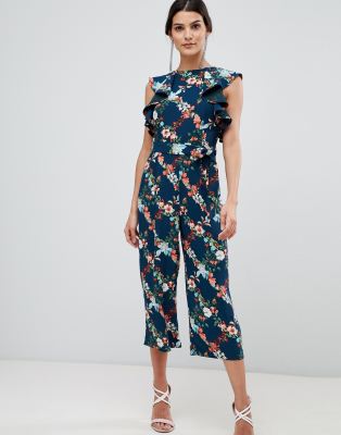 Oasis Fitzwilliam Collection Jumpsuit In Floral Print With Frill Shoulder navy ModeSens Very well made.