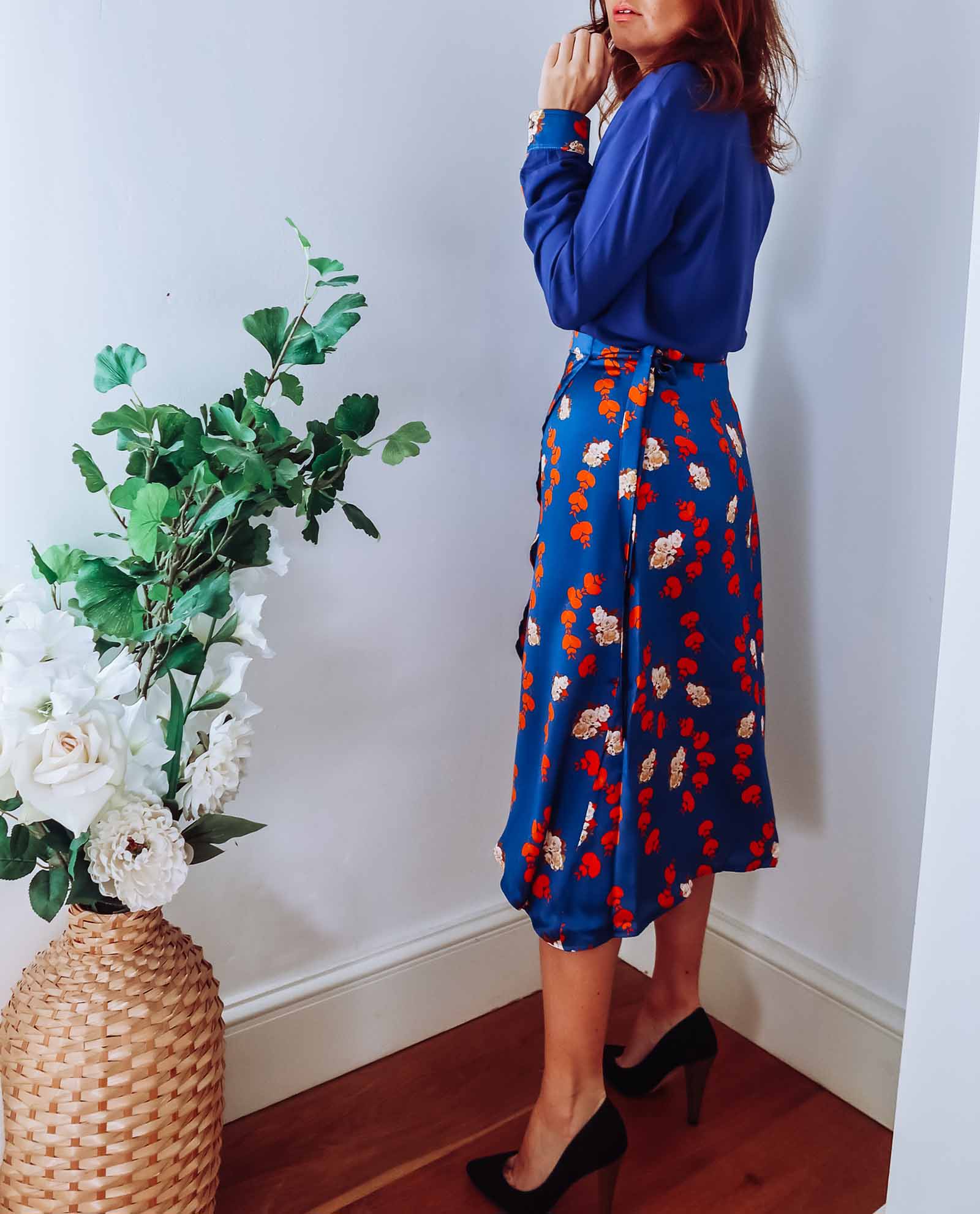 Blue Floral Silk Wrap Skirt Sophie Cameron Davies Wolf Badger Very well made.