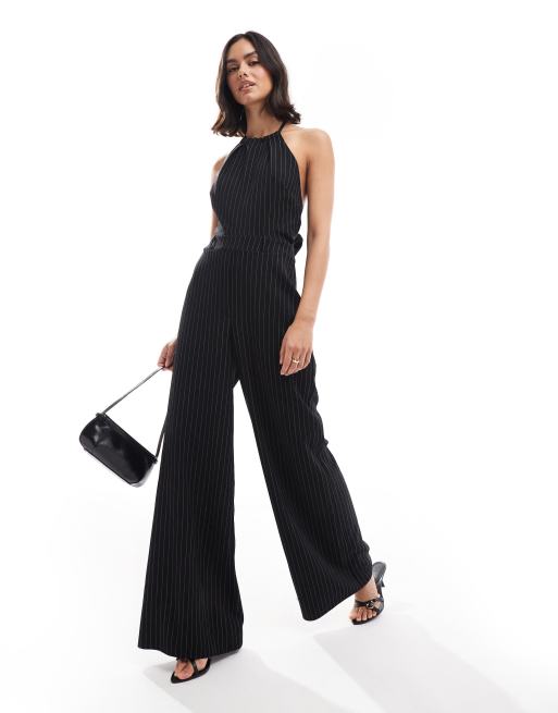 ASOS DESIGN halter tie up back jumpsuit in black and white stripe Very well made.