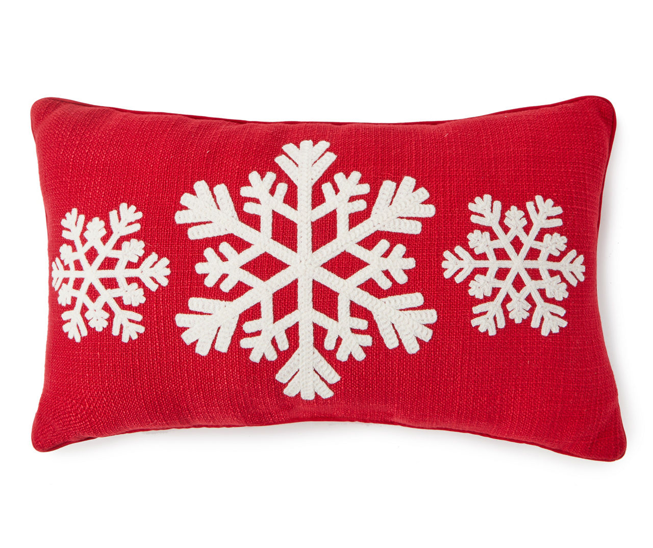 Winter Wonder Lane Red White Embroidered Snowflake Throw Pillow Very well made.