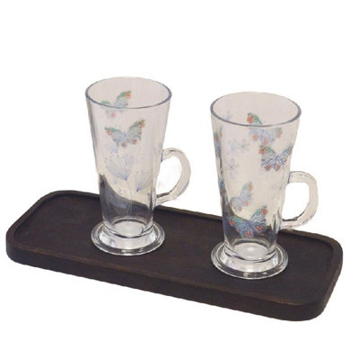 2 Butterfly Latte Glasses Tall Coffee Mug Hot Chocolate Mocha Drinks Glass 300ml Very well made.