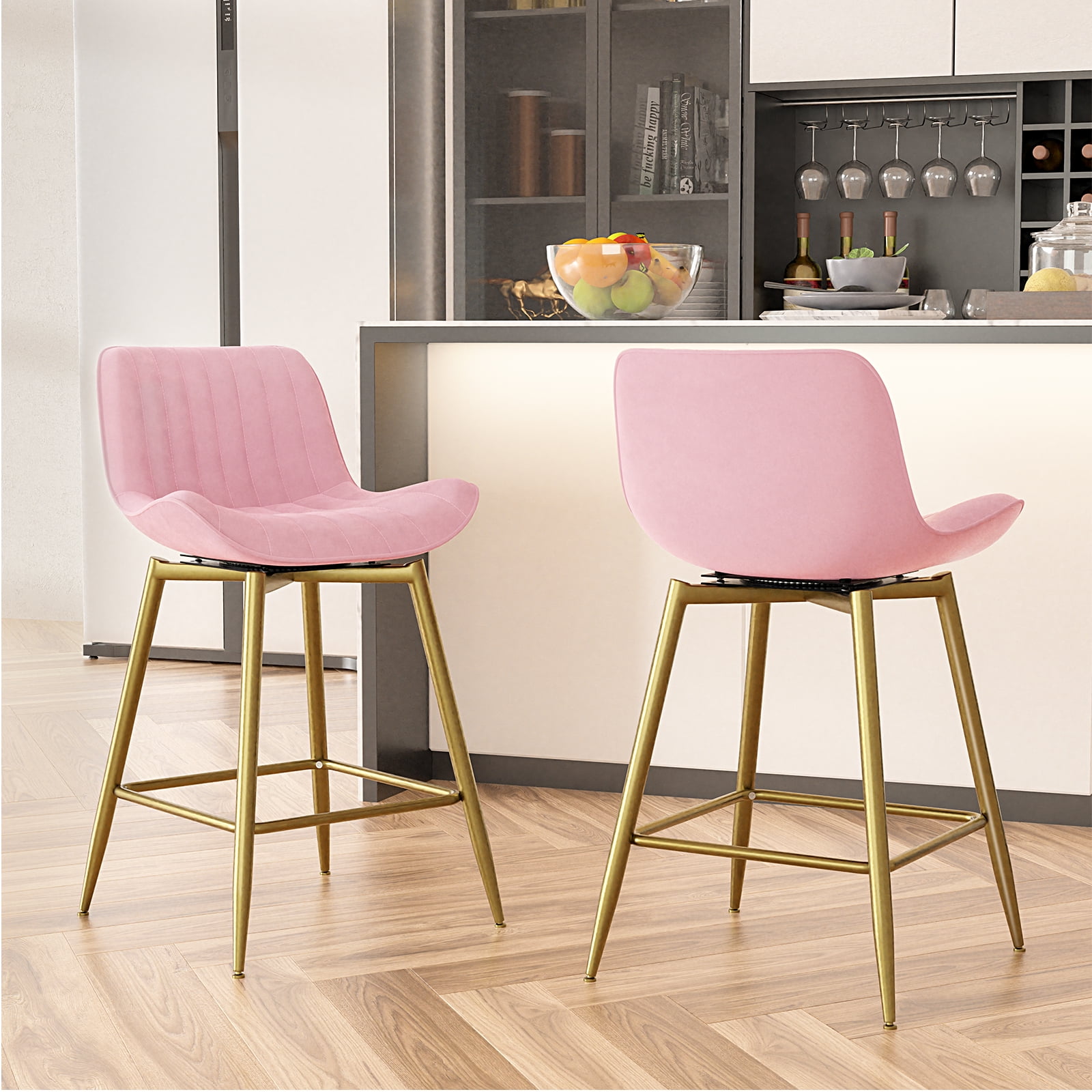 Homezeer 24 Counter Height Bar Stools Set 2 Gold Metal Legs Velvet Upholstery Kitchen Stools Pink Walmart Very well made.
