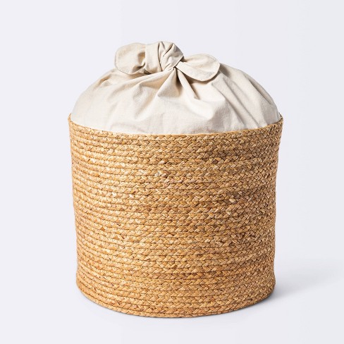 Braided Water Hyacinth Storage Basket With Fabric Tie Closure Xl Very well made.