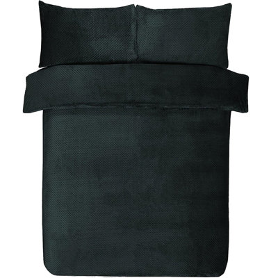 Sleepdown Black Waffle Teddy Fleece Duvet Quilt Cover Pillowcase Very well made.