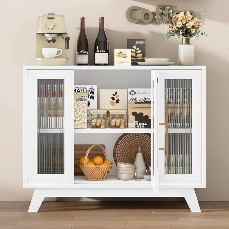Multi functional Sideboard Buffet Cabinet with Fluted Glass Door 36 Modern Accent Storage Cabinet with 2 Tier Storage White Coffee Bar Cabinet for Very well made.