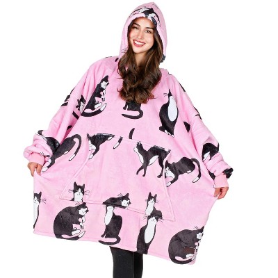 Tirrinia Wearable Blanket Oversized Hoodie for Adults Wonder Cat Print Fleece Sweatshirt as Funny Warm Gifts for Family Friend One Size Fits All Very well made.