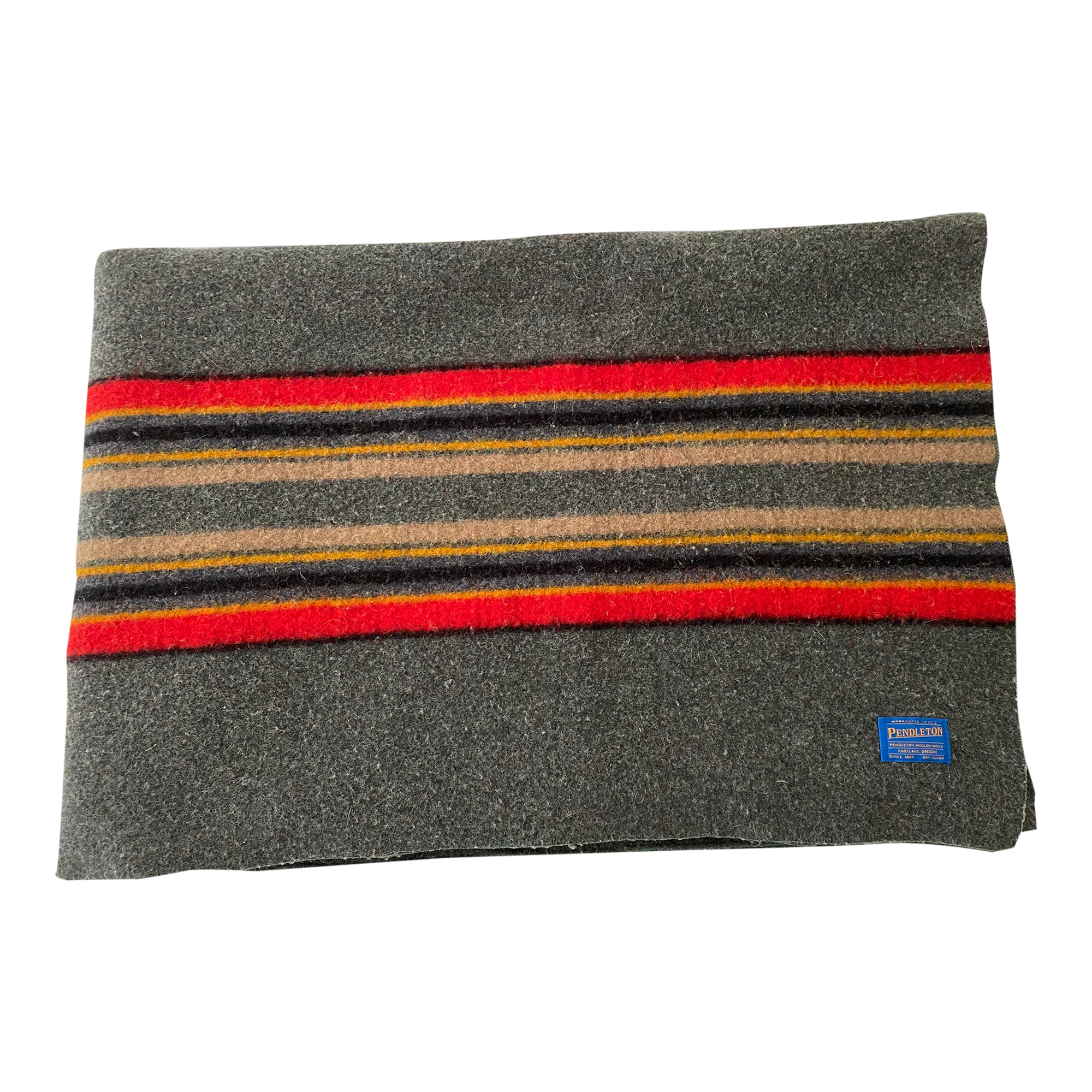 Vintage Pendleton Gray Wool Blanket With Stripes Very well made.