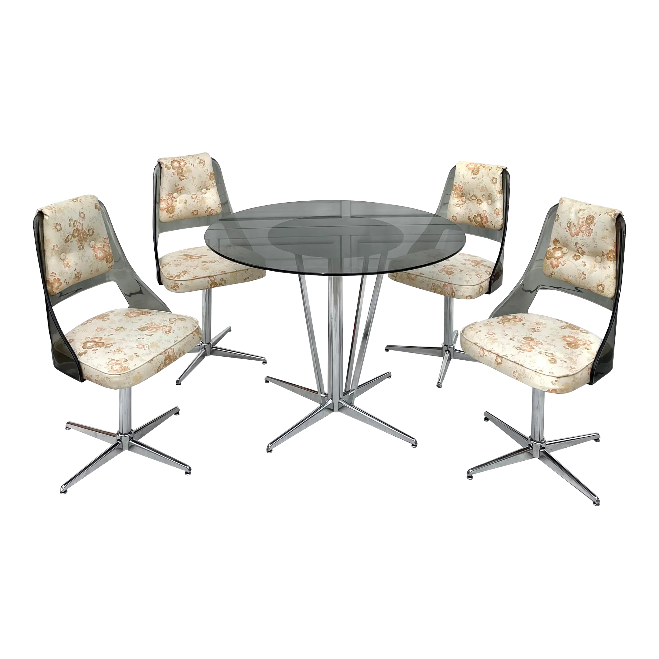 MCM Smoky Glass Lucite and Chrome Dining Table Set Very well made.