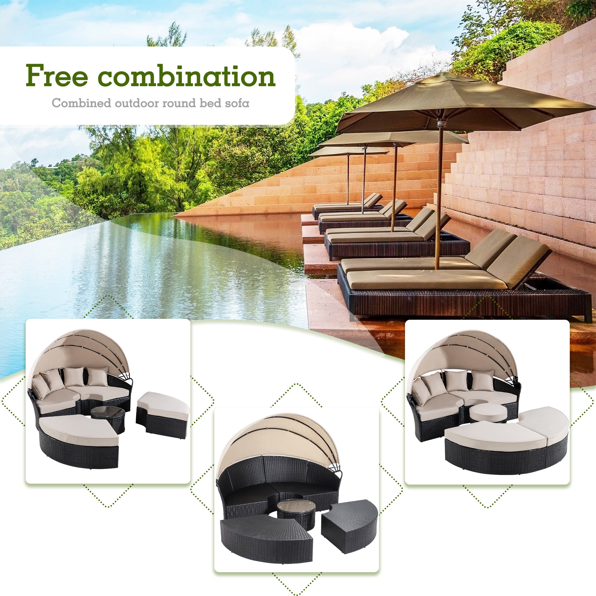 Amazon RELAX4LIFE Round Outdoor Daybed with Canopy Wicker Rattan Sectional Sofa Sunbed w Washable Cushions 2 Pillows Modular Conversation Lounger Seating Furniture for Backyard Poolside Patio Day ... Very well made.