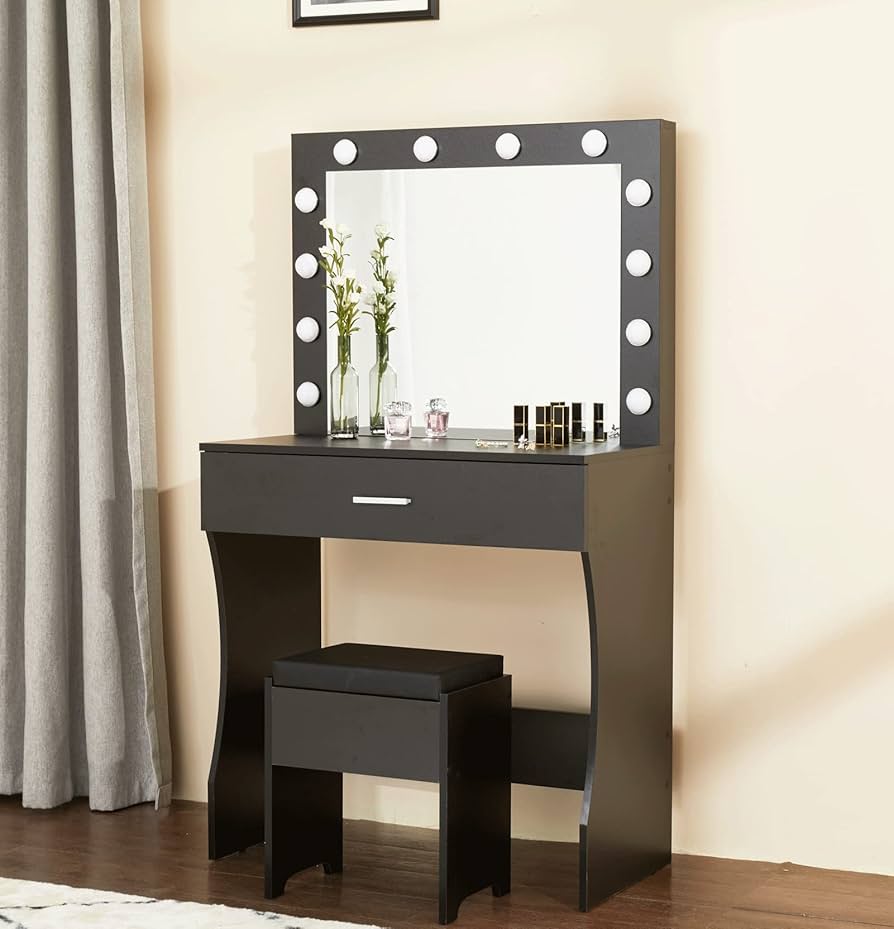 Vanity Table Set with Lighted Mirror Makeup Vanity Desk for Girls Women Larger Drawer and Cushioned Stool with Extra Storage Space Very well made.