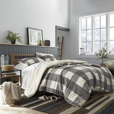 Eddie Bauer Sherwood Plaid Charcoal Comforter Set Full Queen Very well made.